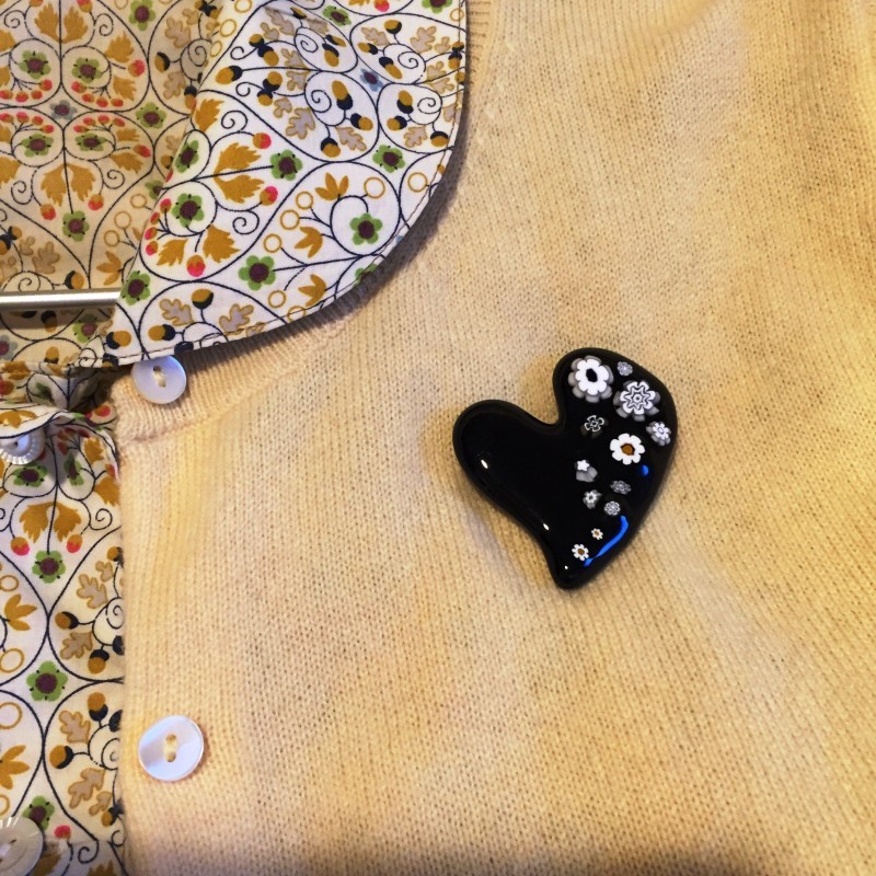 着きました。ミルフィオリ初getでした。模様の色は画像より地味でしたが,ハートの形がユニークで,ツヤもあっておもしろいブローチでした。梱包をはじめ,丁寧な対応をありがとうございました。