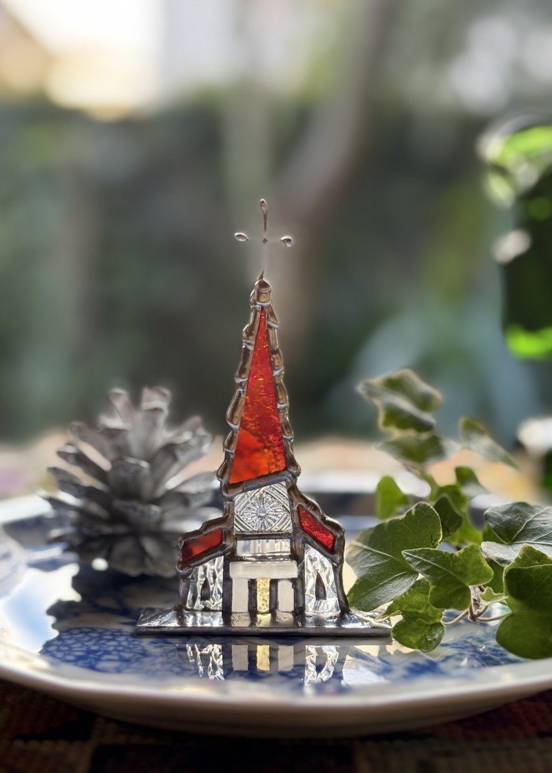 可愛らしい聖堂が無事に届きました。ひとつひとつの小さなガラスの色合いがとても美しく、調和していて、光を通すととてもきれいです。手もとに置いてずっと眺めていたくなりますね。大切にしようと思います。今回はお世話になりましてどうもありがとうございました。