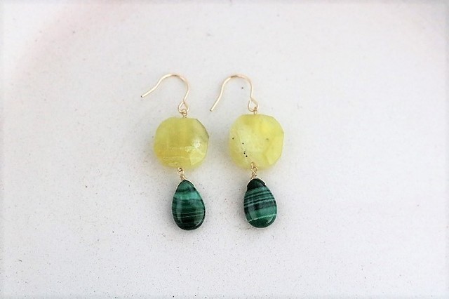 <14KGF>マナカイト&ゼブラジャスパーのピアス