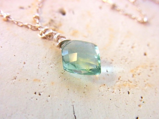 石の色がとてもさわやかで、ビーズ付きのチェ−ンはレースみたいな雰囲気で女性らしい雰囲気です。