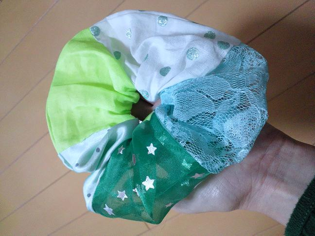 届きました。シュシュは思っていたとおり、今回のものは愛らしい感じ。オーガンジーが上品で、きっと娘も気に入るでしょう。1歳の女の子のママがこれで髪をまとめていたら、きっと孫娘も喜ぶのでは、と思います。