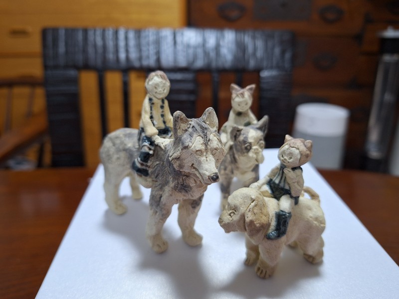 見るたびに表情が違って見えるようで、ちょっと不思議で愛らしい子達。見れば見る程に愛着が深くなる作品です。