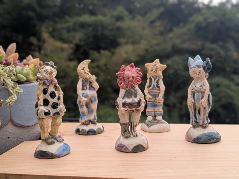直近にいただいた人形たちとならべてみました。見ているとこの上なく楽しい気分になります。開封が今日になり、報告が遅くなりました。容赦願います。ひきつづき、楽しみに作品を拝見したいと思っています。