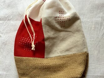 リネンの巾着袋 green&blue stripe¥2,600 -