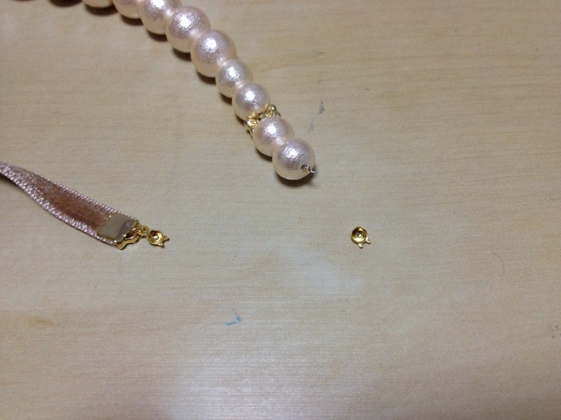 ベロアリボン結び☆コットンパールネックレス(ベージュ)