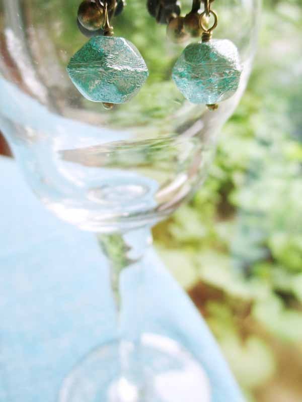 手捏ねみたいなチェコビーズのピアス ブルーグリーン (他1点)