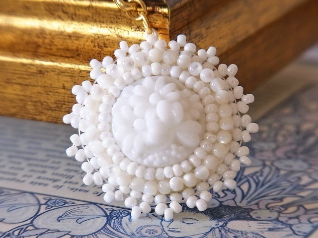 花ブローチ 繊細でかわいくて美しいブローチでした!繊細なビーズ刺繍とビンテージのガラスがほんとにすてきです!大切にいたします うっとりと眺めます^^