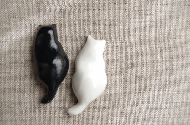 白と黒のねこさん、ぷにっとしたフォルムでかわいいです。想像していたよりもずっと、きちんと箸置きの仕事をしてくれる雰囲気です。今回は自宅用だったのですが、プレゼントにもよいですね。ありがとうございました!