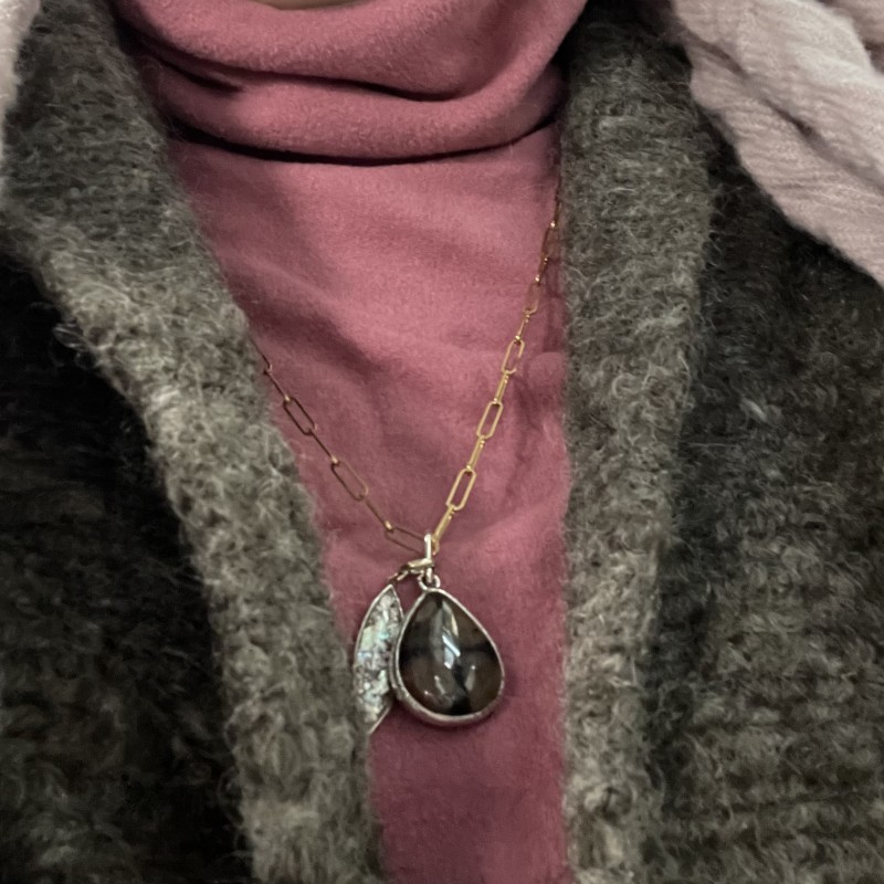 こんにちは。先程、作品が届きました。この度も、迅速且つ懇切丁寧な対応、感謝しています。(素敵なポーチも有難うございました)。静かな教会の中、賛美歌が聞こえ、蝋燭の炎に照らされた十字架の様な、聖痕の様にも見える、尊い感じのするペンダントだと思います。祈りを込めて身につけたいと思います。この度も、素晴らしい作品を、本当に有難うございました!!