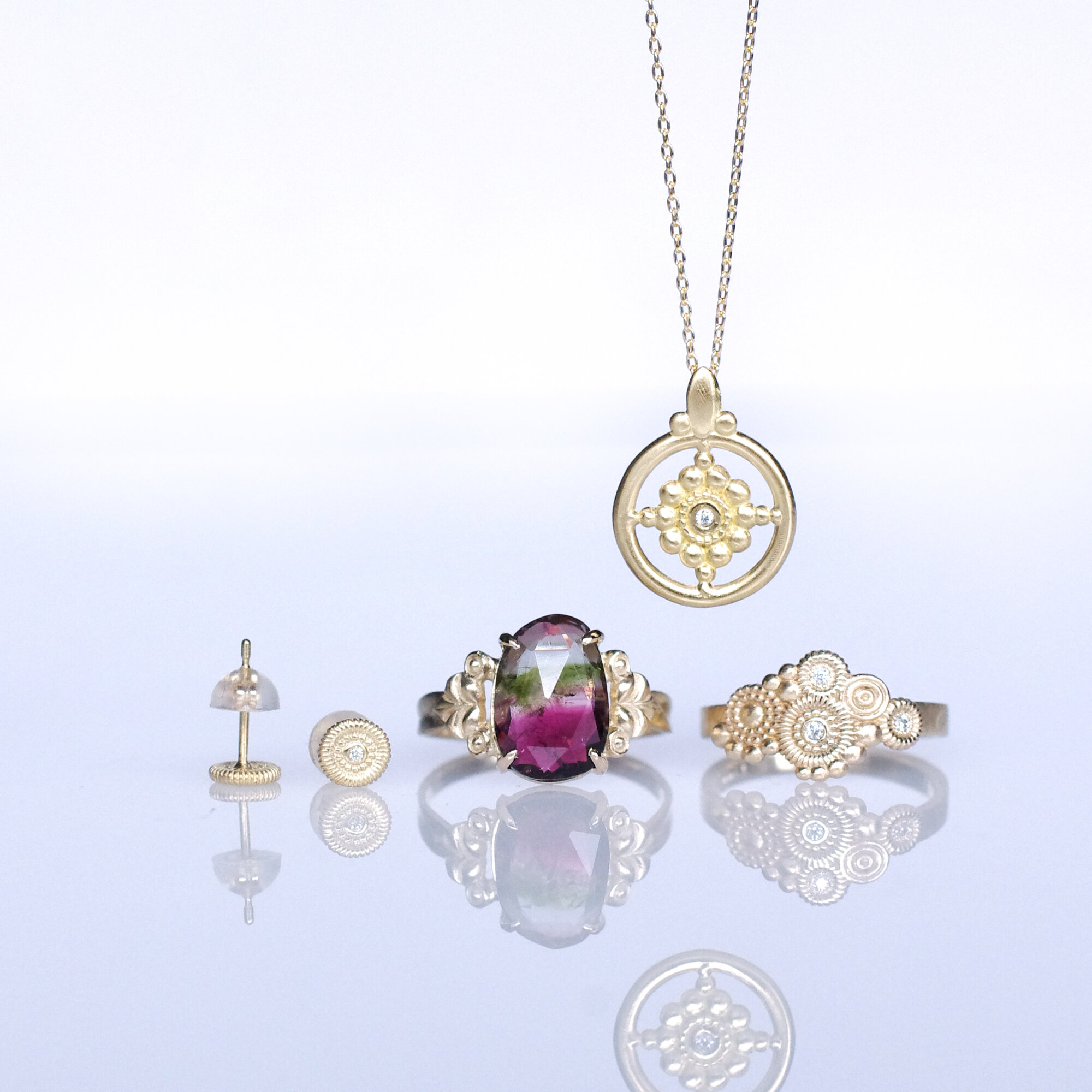 トルマリンの緑の中の虹のようなきらめきがとても綺麗です。素敵な作品をありがとうございます。
