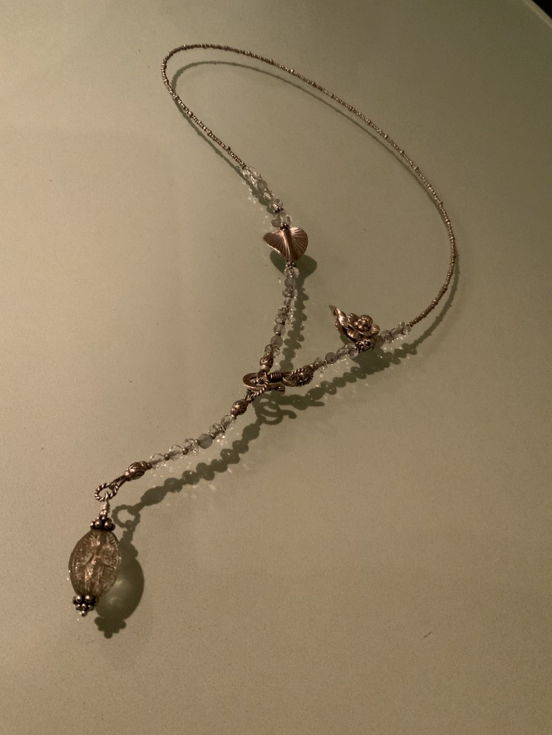 「A様専用」ロザリオパーツとボタニカルなカレンシルバー、クォーツ、ラブラドライト、ハーキマーダイヤモンドのネックレス