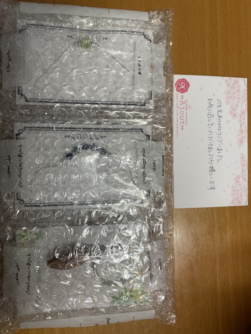 繊細でスタイリッシュなお品たちが到着しました。今回も期待以上の作品で、とても気に入りました。丁寧な梱包もありがとうございます。