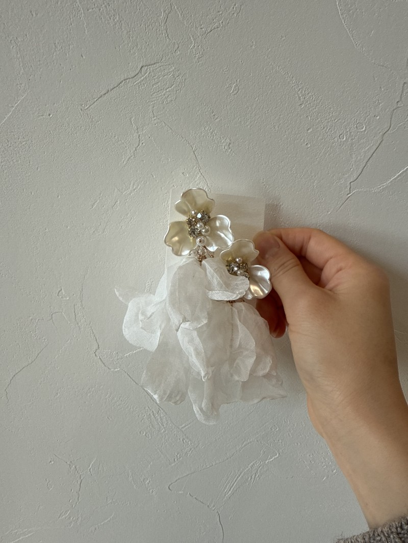 大ぶりパールホワイトフラワー✨ダブルシフォンウェディングピアス