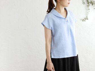 冬も心地いい ✦ 桐七炊きリネン100% バンドカラーブラウス(ブルー)TP52¥15,400 -