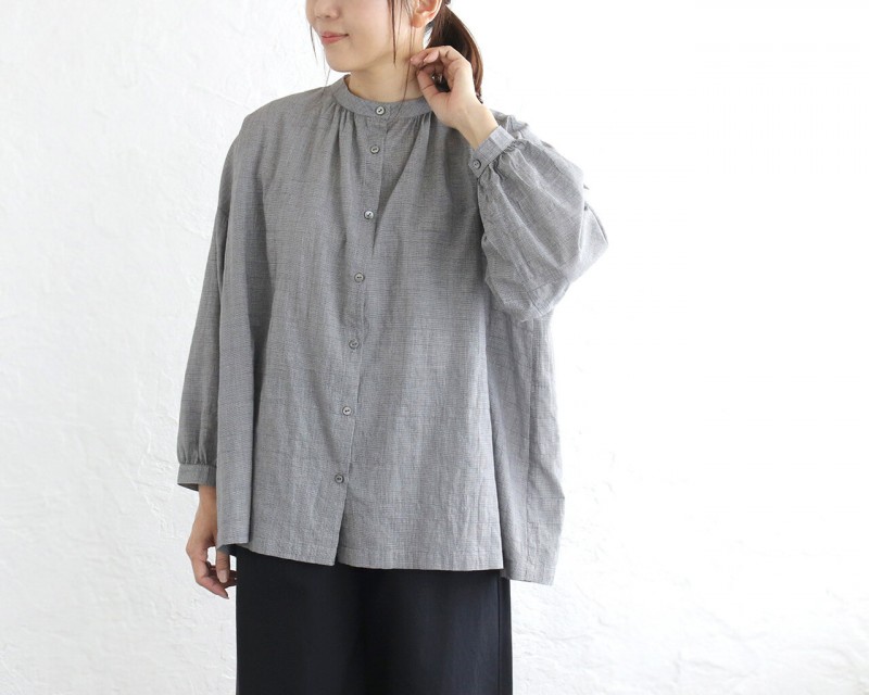 シルクのようなスーピマコットン バンドカラー ループボタン シャツブラウス (オフホワイト)TP29 (他1点)