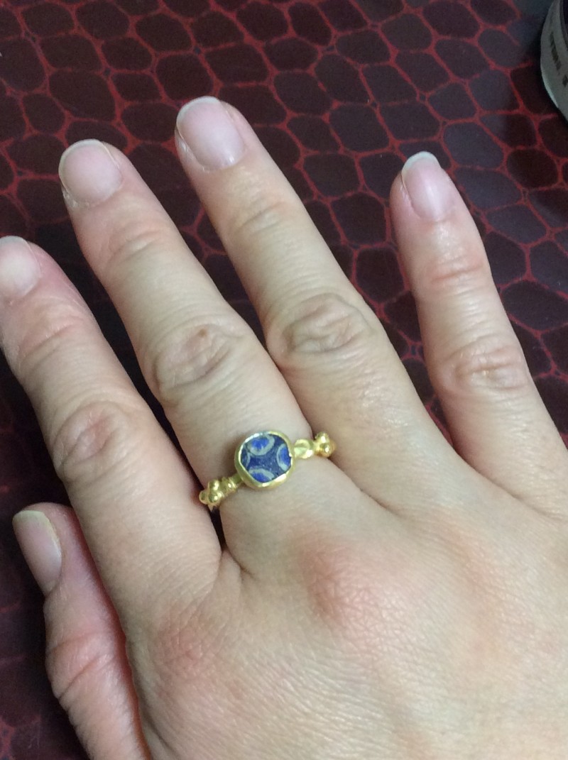 古代スタイル*ベネチアンブルーガラス 印章 指輪*10号 GP
