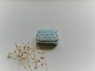 こぎん刺しのピルケース(アクセサリーケース)ミラー付き・スクエアM・あじさい色¥1,450 -