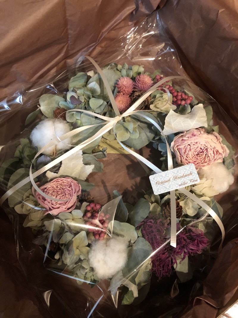 今回も季節を感じられる素敵なリースに出会えて嬉しいです。迅速なご対応と、丁寧なラッピング、心温まるメッセージカードに、作品だけではない素敵なプレゼントをいただいた気持ちになります。ありがとうございました!