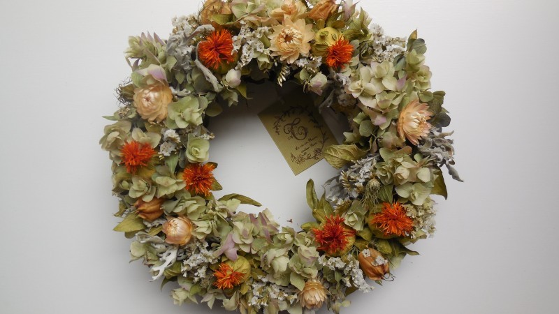 いつもは生花ですが、リースなら長く楽しめるし
