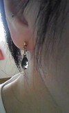 小粒のイヤリングが可愛らしく、光を通してグリーンが透き通り、また落ち着いた雰囲気もとてもいい感じです。