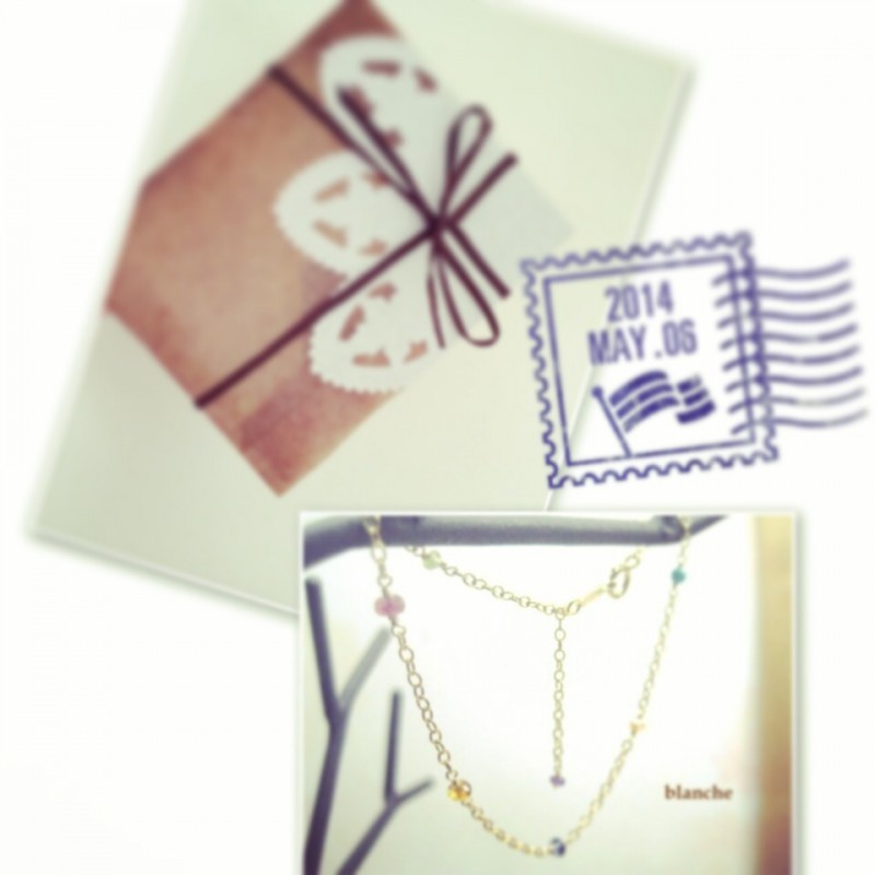 今日、届きました!ネックレスもブレスレットも思っていたより華奢で、キラキラと綺麗でした!ブレスレットの長さを調整していただいたのですが、これが私にピッタリで、さらに嬉しくなりました(^^)ネックレスもペリドットを10粒も使っていただきました。とても素敵です!わがままを言いましたが、迅速に、また快く対応していただきまして、ありがとうございました!お願いして本当に良かったです!