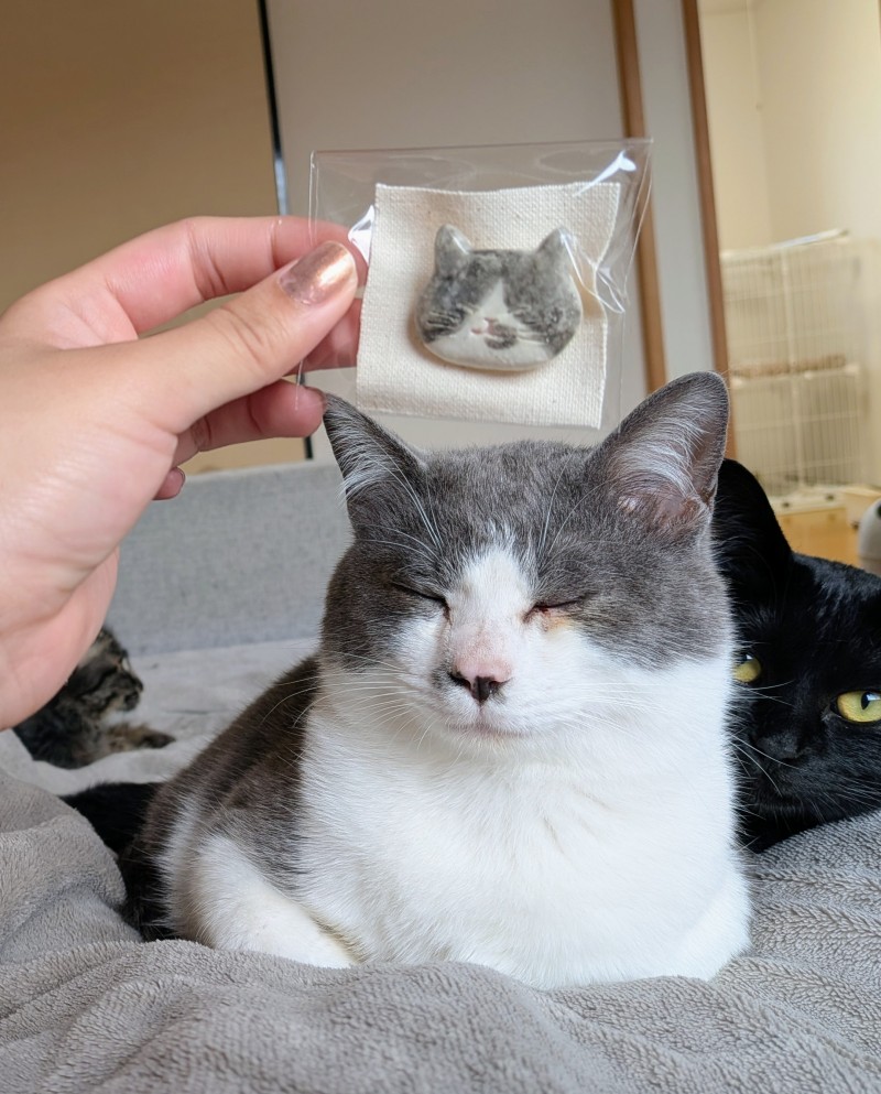 猫のお顔の陶器ブローチ〜穏やかなキジ猫〜【一点もの】 (他2点)