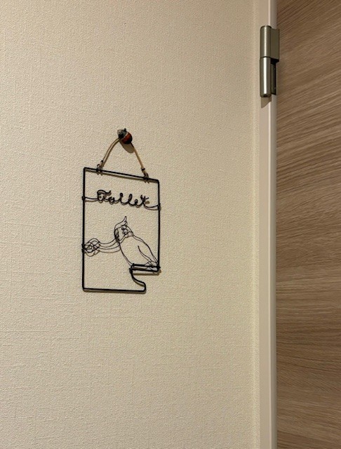 ネコちゃんとオカメちゃん、どちらにしようかとずっと迷っていて、ふと足元をみたら我が家のオカメーズが紙をハミハミしながら遊んでいる。これだっとようやく決意。トイレの場所が分かりづらいのが悩みだったのですが、これで来客時も安心してご利用いただけます(笑)CHIKAさまの作品はいずれも愛らしいので、またお世話になります。心から有難うございました!