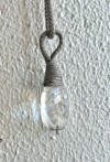 光のあたり具合によってブルーがほんのりあらわれます。素朴な雰囲気でTシャツなどにも合わせやすそう。この暑い季節にたくさんつけたいペンダントです。