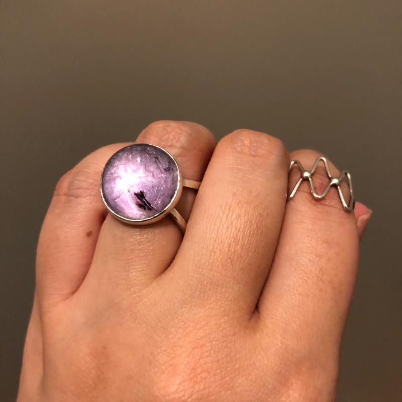 よくはめる左人差し指にサイズもピッタリで、優しくも神秘的なグレーと心地よい重さに酔いしれますね。素敵な指輪を作っていただきありがとうございます。また誕生日が近くなりましたらお願いしたいです!