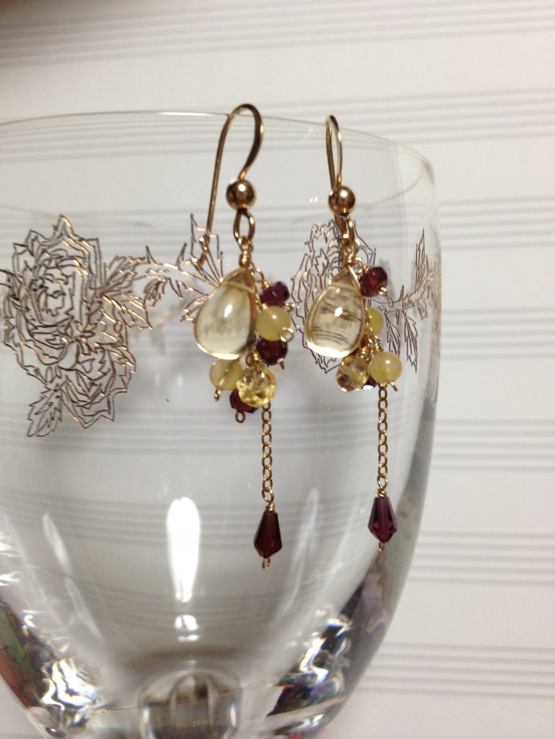 【御予約品】K14gf:シトリン・アラゴナイト・ガーネットピアス