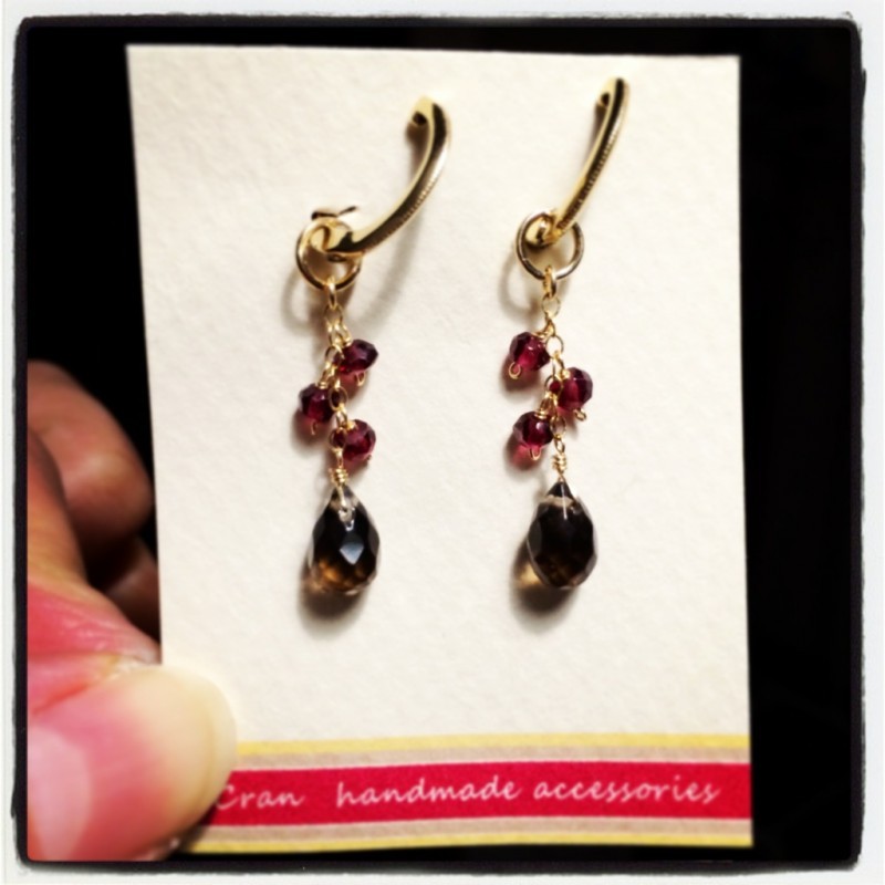 【ご予約品】K14gf:ガネット&スモーキークォーツのチャーム