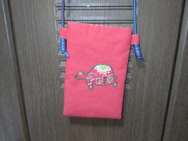 カメの刺繍に一目惚れし、自分の好きなカラーで作成していただきました。
