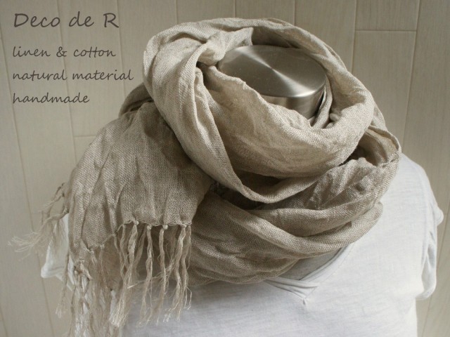在庫少*オススメ!上質リネンシングルガーゼのストール 亜麻色