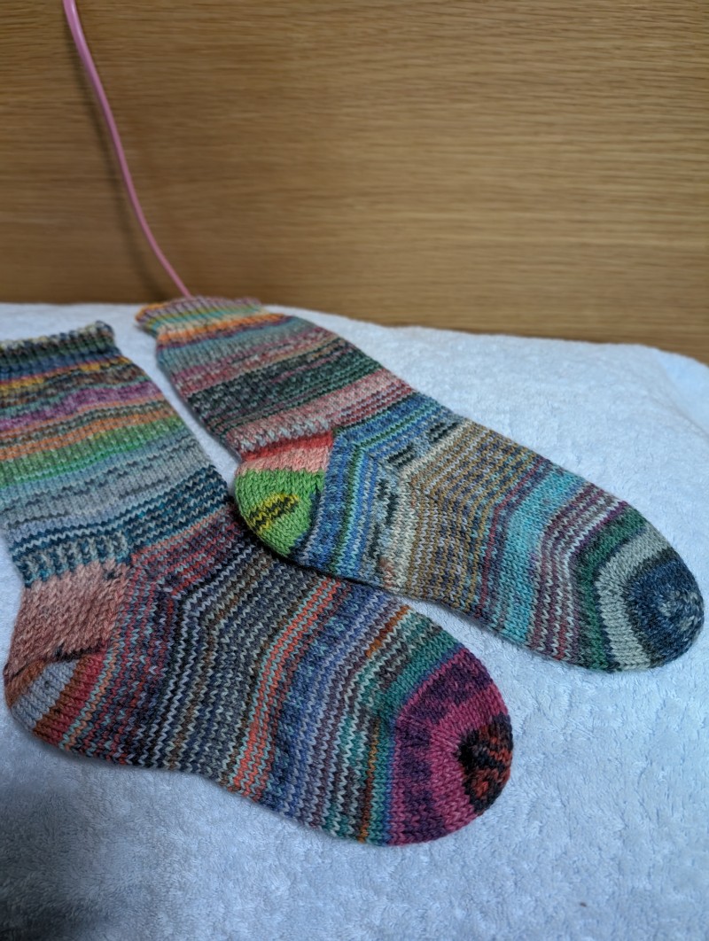 寒い冬に手編みの毛糸の靴下はやっぱり暖かいです。