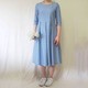 【S】アーミッシュ風シンプルワンピース◇七分袖(水色ボーダー)*デニム調*