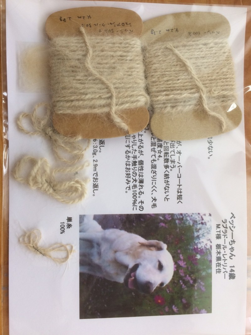 亡き愛犬の毛が、毛糸になって届きました。