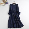 f90207(再販2) 柔らかな綿麻生地 おしゃれなドット柄プリント 長袖ワンピース