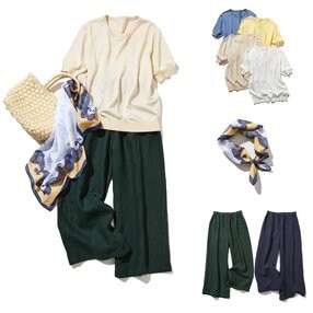 ★初秋の福袋★半袖ニット(選べる4色)➕大判 スカーフ➕リネンワイドパンツ(選べる2色)