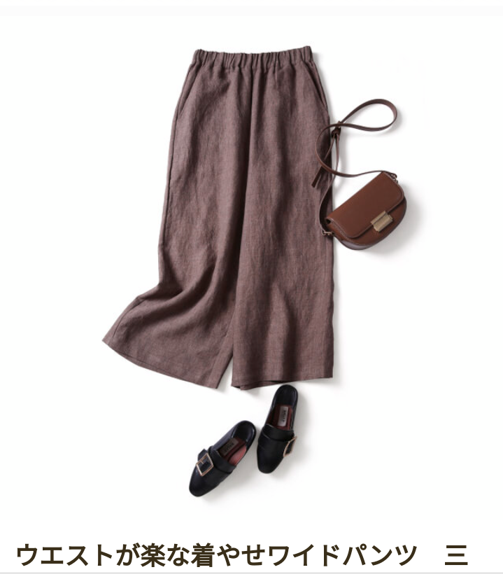 ウエストが楽な着やせワイドパンツ 三色 茶色 200907-2 (他1点)
