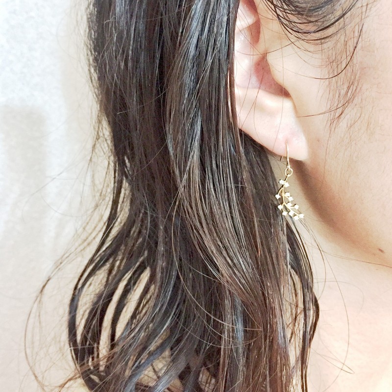 ピアスのようなイヤリング*コットンパールとスワロフスキー*