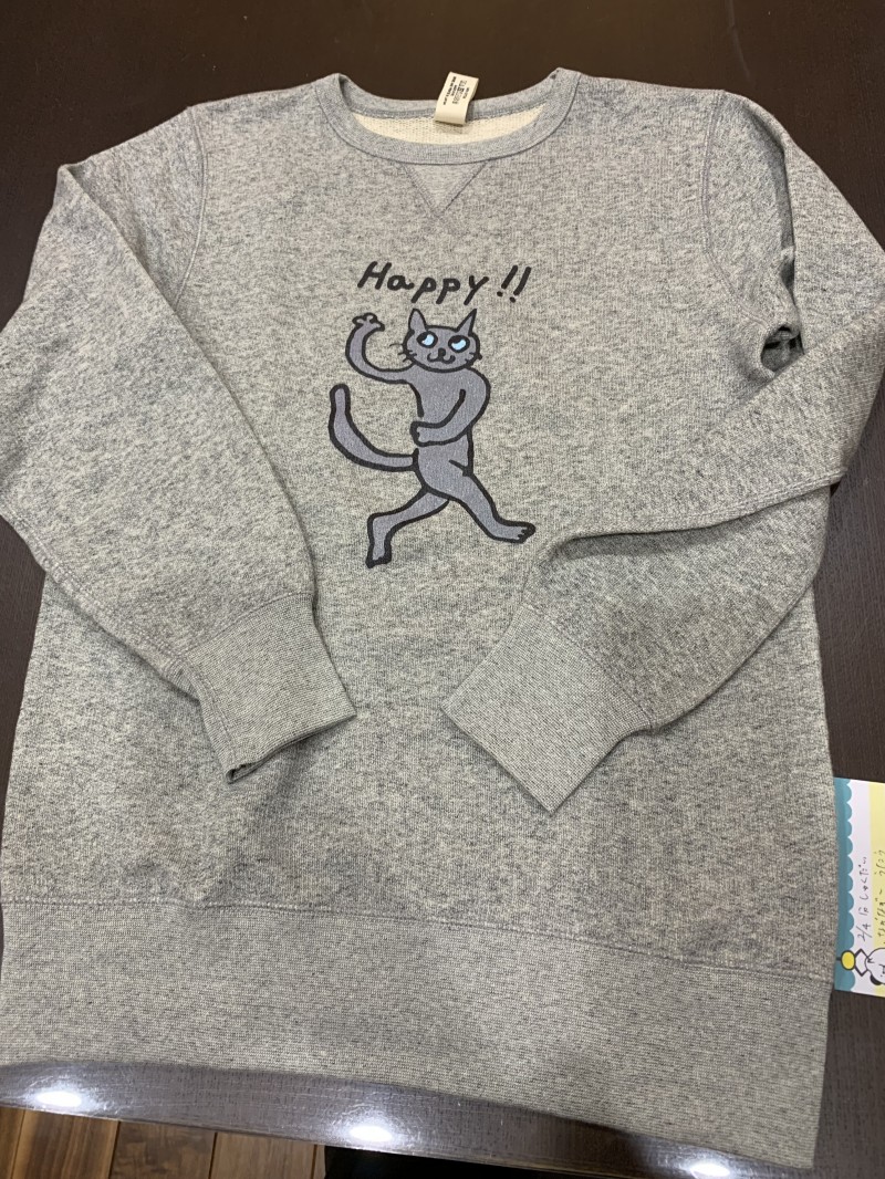 ハッピーキャット 猫 グレー猫 ブリティッシュショートヘア ロシアンブルー スウェット イラスト トレーナー メンズ レディース