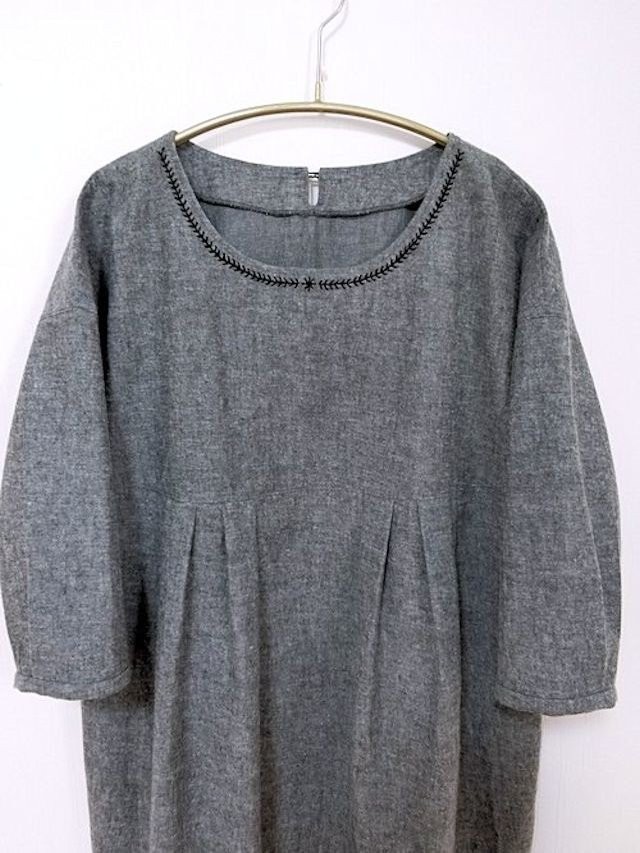 柔らかダンガリー・刺繍のワンピース