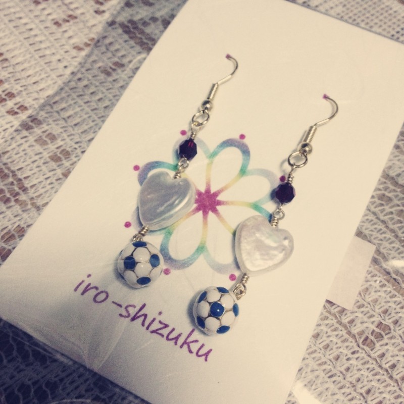 前回のもすごく気に入り、もうひとつサッカーボールのピアスがほしかったので、今回のもすごく気に入っています(^ー^)