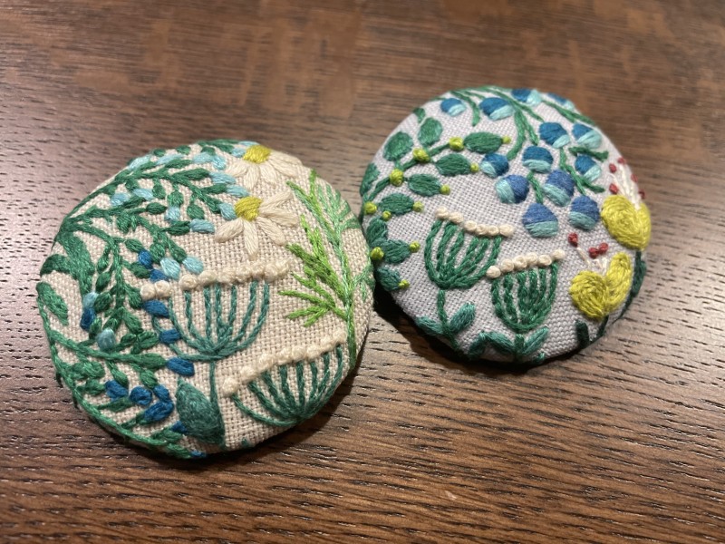 北欧風お花の刺繍ブローチwith beads (他1点)