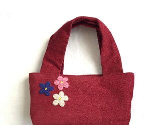 お花刺繍のきんちゃく(赤)¥3,900 -