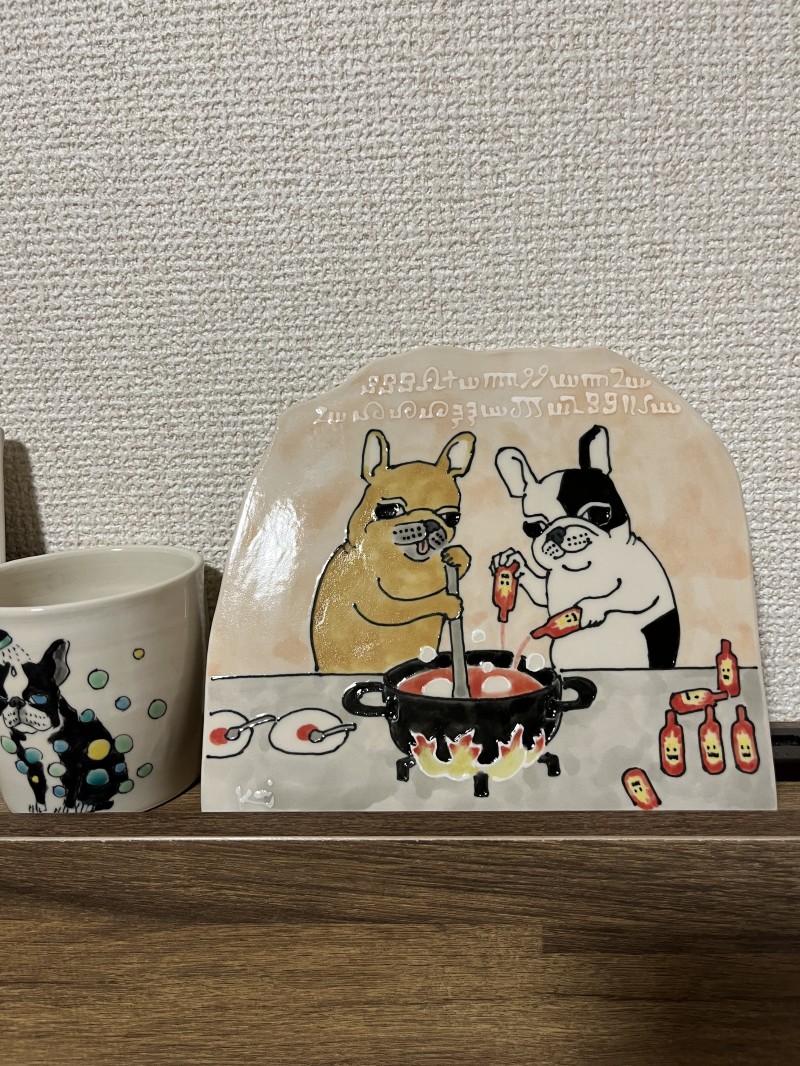 ちょうど辛い鍋の日だったので、届いたフレンチブルたちと一緒に辛いの食べました笑