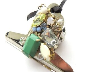 宅録、タブ譜や楽譜を使う音楽練習に!きれい色ビジューたくさんの楽譜止めワイドクリップ(ピーコックグリーン大)¥2,700 -