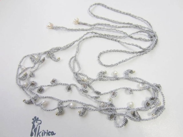 レーヨン紐を編み込んだラリエットなのでチョーカー風にしたり、ロングにしたり、手首に巻いたり、、、色んな使い道があり、今夏ヘビロテ間違いなしな感じです。