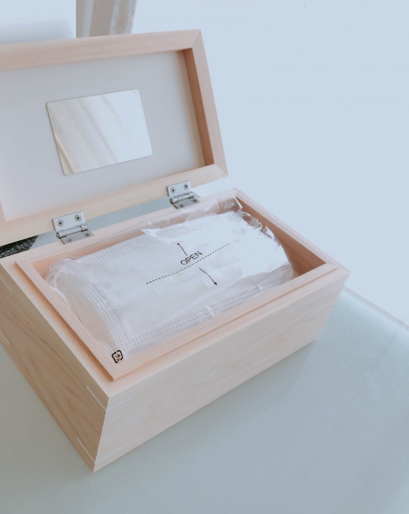 注文してすぐに届きました。ヒノキの香りがほのかに漂ってます。使い捨てマスクにピッタリなサイズで使い心地良さそうでとても気に入りました。