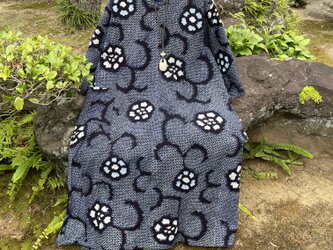 【着物リメイク】絣の衿付きコートワンピース/藍染め¥33,000 -